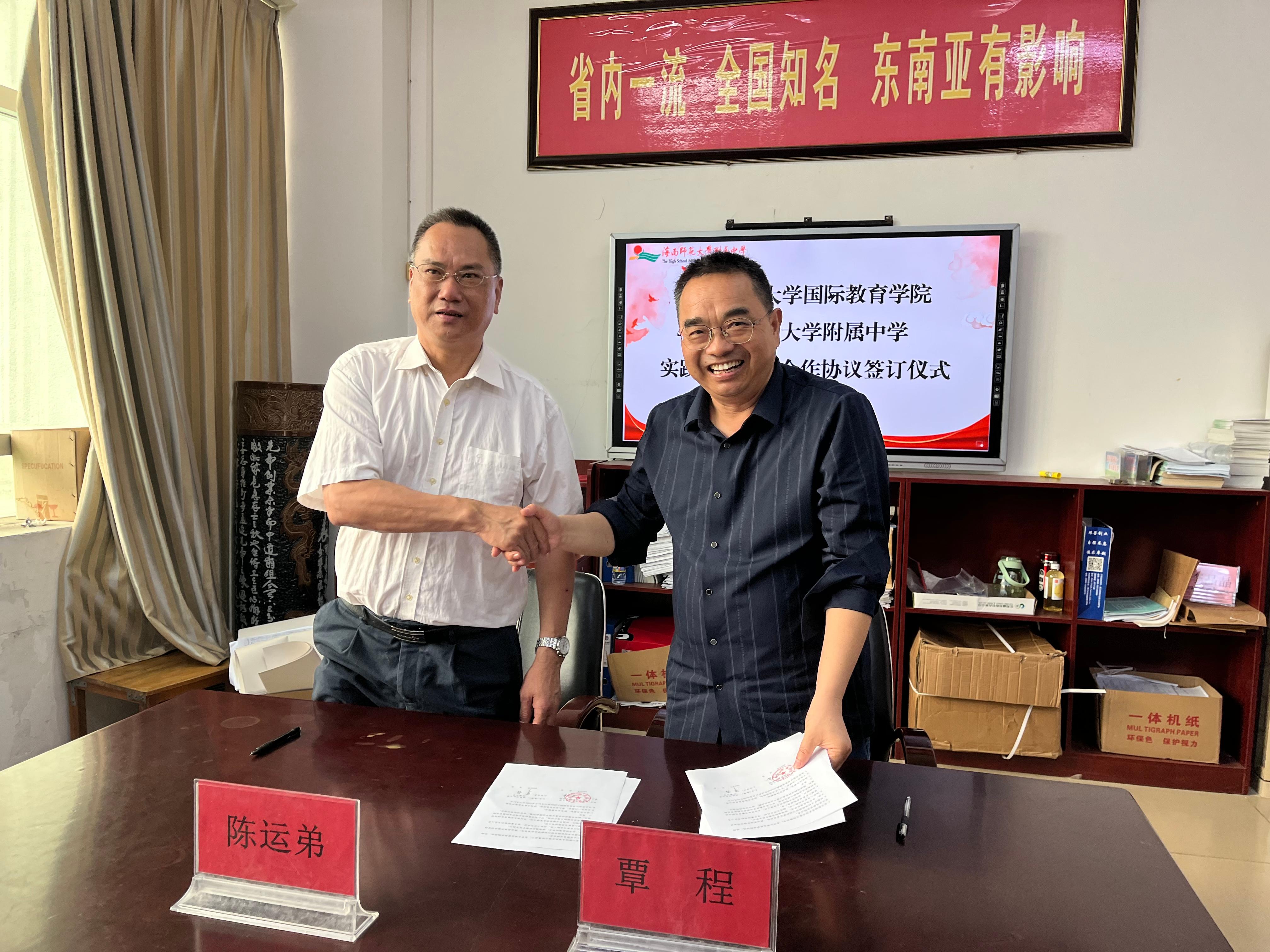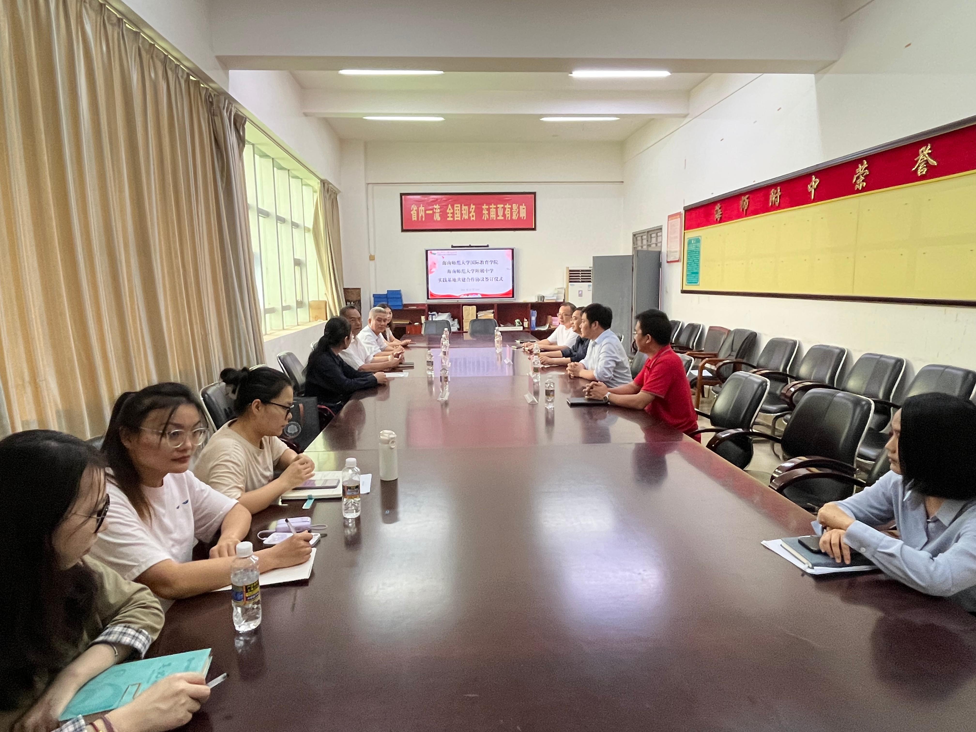 P站视频分管教学的副校长邹春平亲率教务科、教学研究与创新中心等部门中层领导负责接待了海师大领导和老师的来访。海师附中校长覃程出席了随后的交流活动及签字仪式。