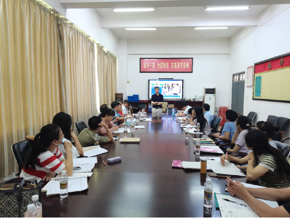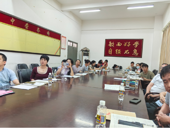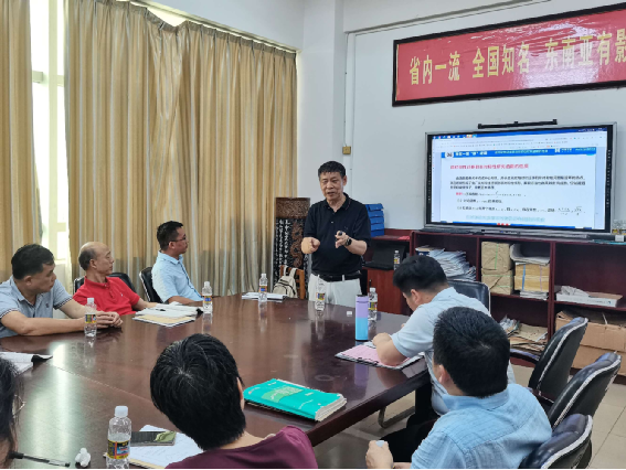 在李红庆老师的讲解指导下,海师附中数学组全体老师或详细记录高考内容如何深度融合学习的方法,或认真思考新教材新高考新试题结构所带来的挑战,或小声讨论对高考数学复习的理解。