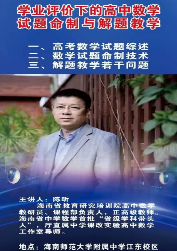 2024年5月8日,P站视频荣幸地邀请到了海南省教育研究培训院高中数学教研员、课程部负责人、正高级教师陈昕主任,为P站视频全体数学教师带来一场专题为《学业评价下的高中数学试题命制与解题教学》的学术讲座。此次活动在P站视频海师附中江东校区报告厅隆重举行,旨在提升P站视频数学教师的专业素养和教学能力。