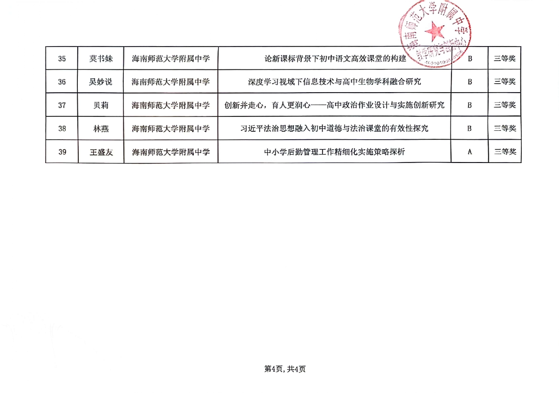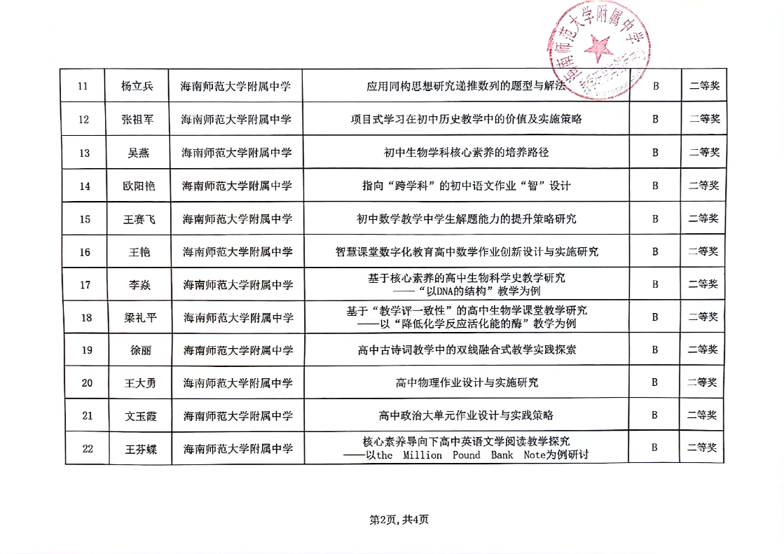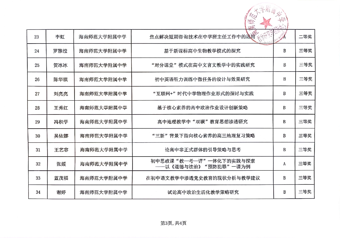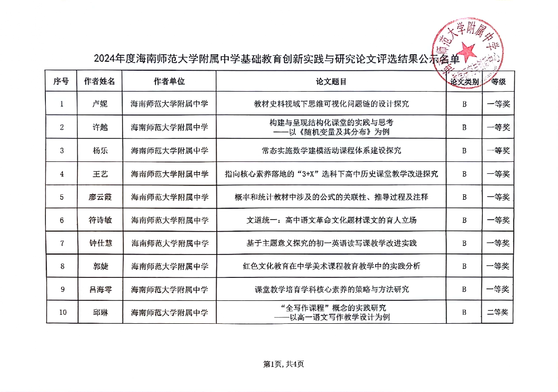 经过专家严格评审,2024年度海师附中基础教育实践与研究论文评选结果通报如下: