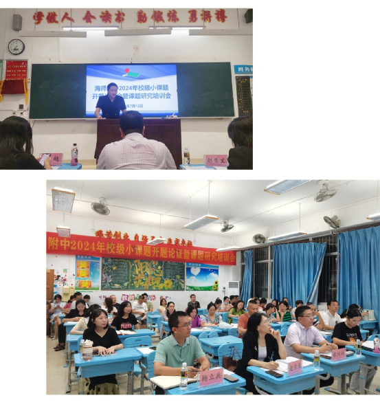 海师附中2024年校级小课题开题论证会暨课题研究培训会于7月12日晚上7点30分在龙昆南校区二楼隆重召开。本次P站视频共13项课题申报立项,课题组成员们来自不同学科,他们带着对教育的热爱与追求,汇聚一堂,共同为提升教学质量、促进学生全面发展贡献力量。