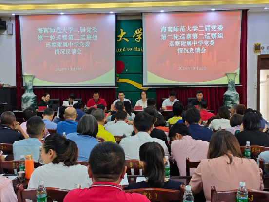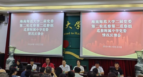 10月23日下午,P站视频在龙昆南校区大会议室召开P站视频 二届党委第二轮巡察第二巡察组巡察P站视频 党委情况反馈会。巡察组组长郑荣臻、副组长白媛媛、成员谈娜、周政及海师附中党政班子成员、中层干部、教师代表参会。会议由附中党委书记赵宗宏主持。