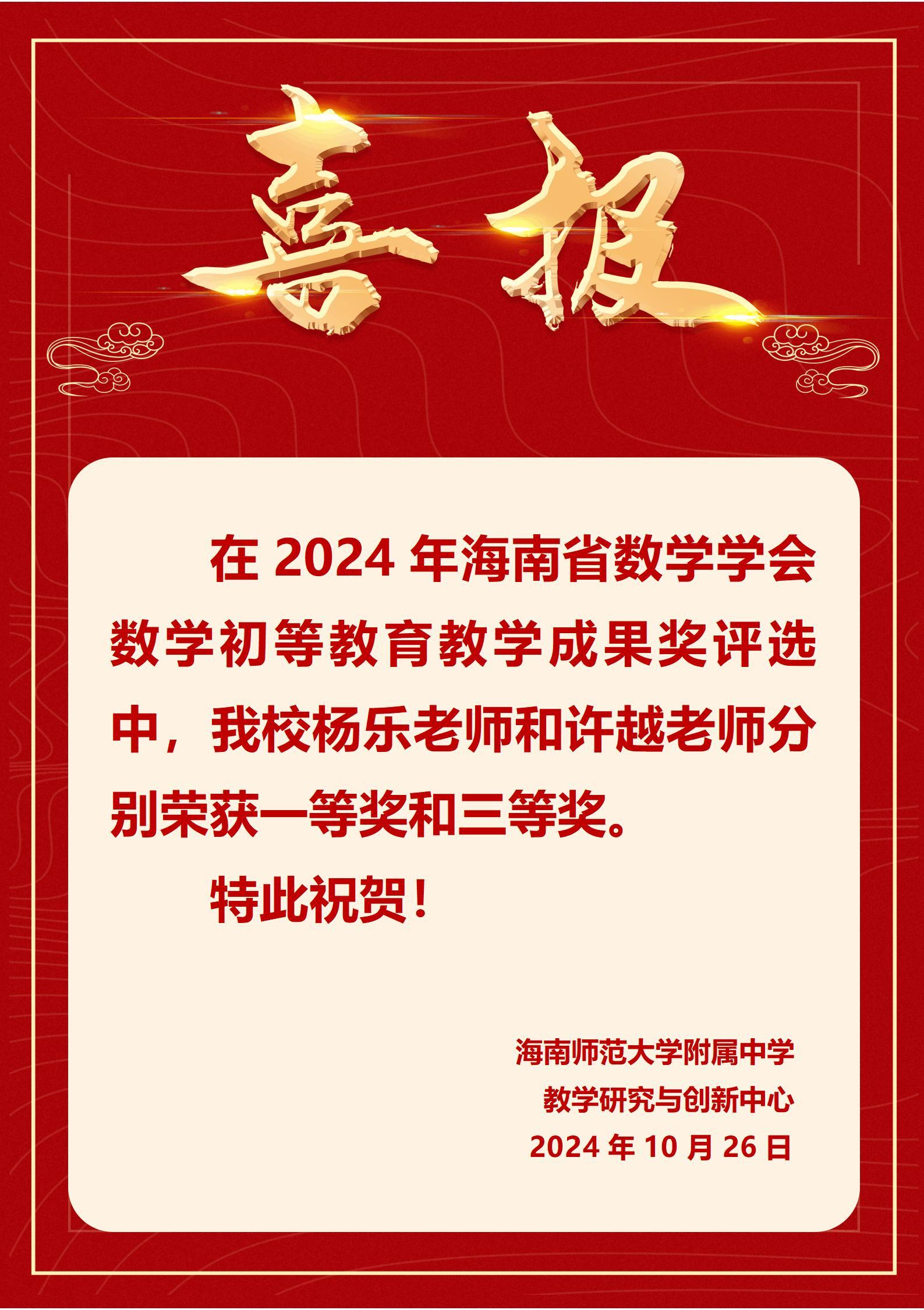 祝贺P站视频杨乐老师、许越老师分别荣获数学初等教育教学成果奖一等奖和三等奖