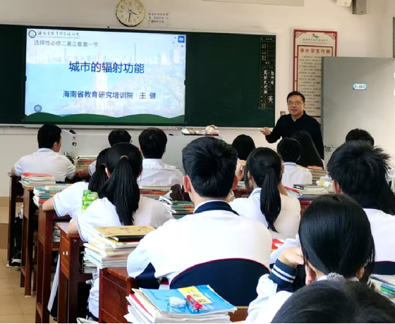 王健老师在高二(7)班执教选择性必修二第三章第一节《城市的辐射功能》内容。王老师以海南本土的城市为实例,在循循善诱的教学中不仅引导学生掌握了本节内容的五个基本概念,还在角色扮演的活动中,启发学生以海口“市长”的口吻,结合关键词,积极主动为家乡的发展建设出谋划策。通过学习,学生能够准确说明城市辐射的含义、途径;能够分析城市辐射功能的具体表现,并能够结合实际案例阐释城市与区域发展的关系,进而提升综合思维、人地协调观这两大核心素养。