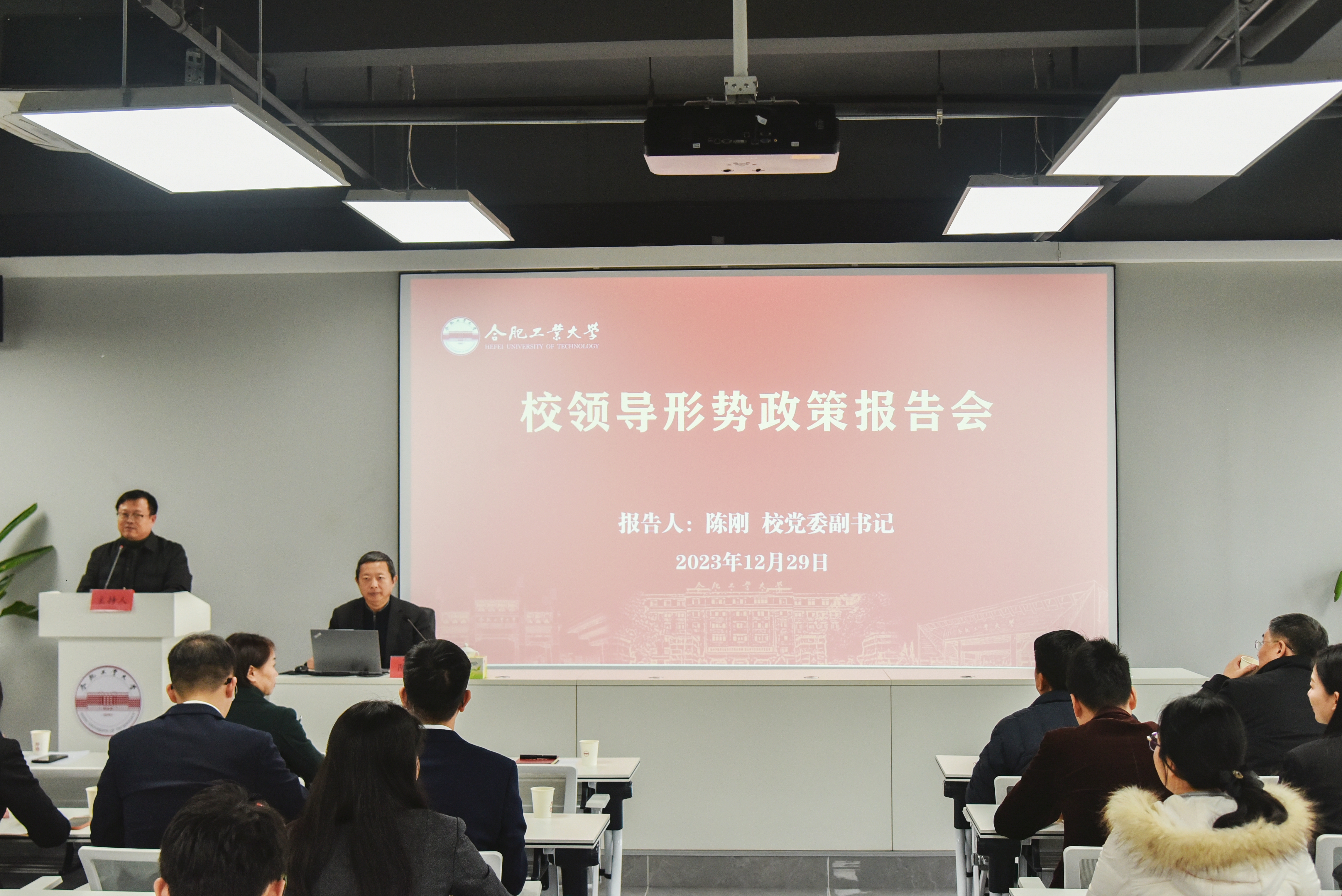 为深入学习贯彻习近平新时代中国特色社会主义思想和党的二十大精神,落实立德树人根本任务,强化理论武装,提升我校师生政治理论素养,12月29日下午,校党委副书记陈刚在翡翠科教楼B501做《走进学生 关照学生 服务学生》形势与政策报告会。P站视频 、软件学院党委书记年永琪主持会议。