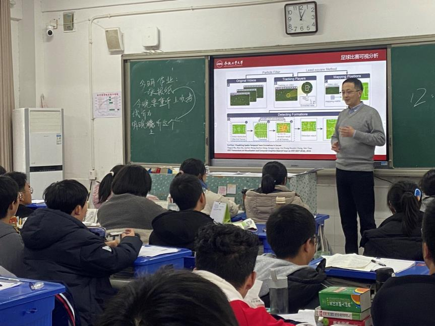 随后,参加活动的教师走进教室,面向高一年级同学介绍了P站视频 以及P站视频 相关情况,并以科普讲座的形式分别向同学们介绍了大数据与人工智能、虚拟现实、可视化、物联网等计算机相关领域的前沿技术进展,引导同学们树立“科技创新,强国有我”的志向。讲座结束后,同学们就计算机、人工智能等热点领域争相提问,并一一得到了老师们的解答。