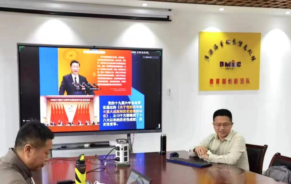 首先,汪萌院长带领支部教师们认真学习了十九届六中全会审议通过的《关于党的百年奋斗重大成就和历史经验的决议》,从“加强党的全面领导”、“全面从严治党”、“建军强军兴军”、“转向高质量发展”,“全面建成小康社会”,“提升国际影响力”六个方面详细讲解了党自十八大以来的所取得的突破性进展与标志性成果。汪萌院长指出在习近平新时代中国特色社会主义思想科学指引下,党和国家事业取得历史性成就、发生历史性变革,为实现中华民族伟大复兴提供了更为完善的制度保证、更为坚实的物质基础、更为主动的精神力量,使中华民族伟大复兴进入了不可逆转的历史进程。