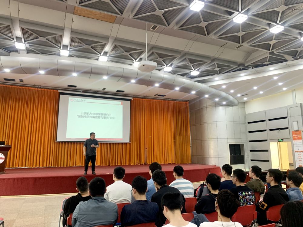 于4月29日上午在综合楼301召开防诈骗安全教育与警示大会,学院全体研究生参加,党委学生工作部、学院分管领导以及党委保卫部的相关老师出席了本次大会。
