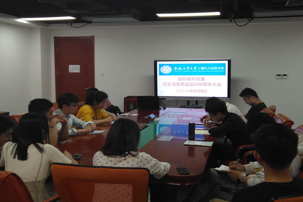 精心组织本科生党员代表、研究生代表和学院教师代表分别在翡翠湖校区科教楼A1106、A1102室收看了纪念马克思诞辰200周年大会。随后组织学生代表围绕大会内容进行了座谈。