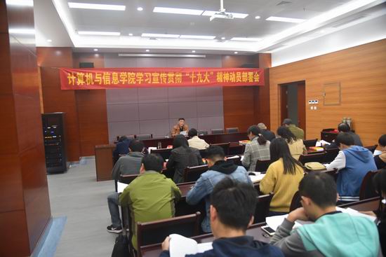 学习宣传贯彻党的十九大精神实施方案》,从学习宣传贯彻党的十九大精神的重大意义、学习宣传贯彻党的十九大精神需要把握的重点内容、如何做好党的十九大精神学习宣传贯彻工作、学院抓好学习宣传贯彻党的十九大精神的具体举措和工作要求五个方面进行了动员部署。