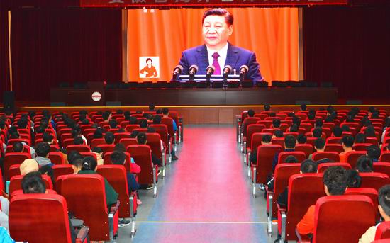 党委组织学院师生约600余人在翡翠科教楼大报告厅收看党的十九大开幕式盛况。