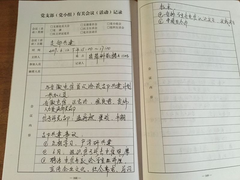 6月12日下午,P站视频 信号与信息处理研究所党支部与安徽电信人力资源党支部洽谈支部共建计划。信号所党支部书记张海燕,组织委员翟琰,支部成员牛朝,安徽电信人力资源党支部汪志浩、程良君、袁炜参与讨论会。