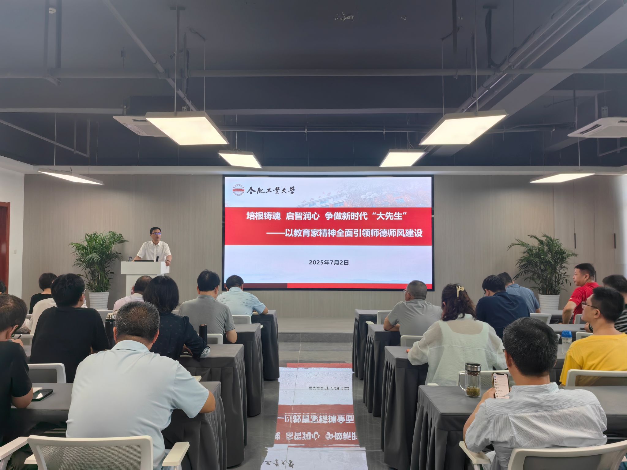7月2日下午,校党委副书记胡笑旋面向学院全体教师及新发展党员,作题为“培根铸魂、启智润心以身示范争做新时代‘大先生’”的专题报告。学院党委书记年永琪主持会议。