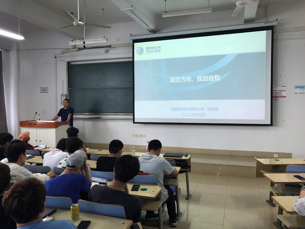 陆宏波先生的报告题目为“锚定方向,规划自我”。作为我校校友,陆宏波先生凭借他在电力行业长达十余年的从业经历,特别以输电网络的部署为例,揭示了在工作岗位中需要时刻保持脚踏实地、精益求精工作态度的道理,并对同学们的职业生涯规划进行了指导。
