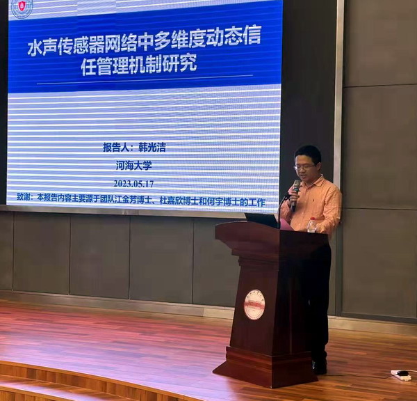 作题为《水声传感器网络中多维度动态信任管理机制》的专题报告。报告会由学院院长汪萌主持,师生70余人聆听了报告。