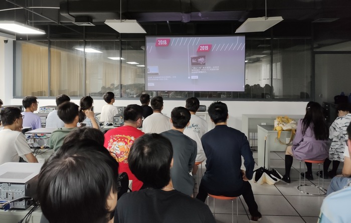 在学校侧,学院两位教师作为校内组织员,带领同学们在直播大厅,采用5G接收设备和大尺寸屏幕,全程观看了企业负责人的介绍,让同学们对可穿戴设备的技术现状有了全面了解,对该行业的发展有了一定的认识,同时对涉及到的专业知识有了进一步的理解。在交流互动环节,大家就华米公司的人工智能技术、人才招聘需求等进行了问答。