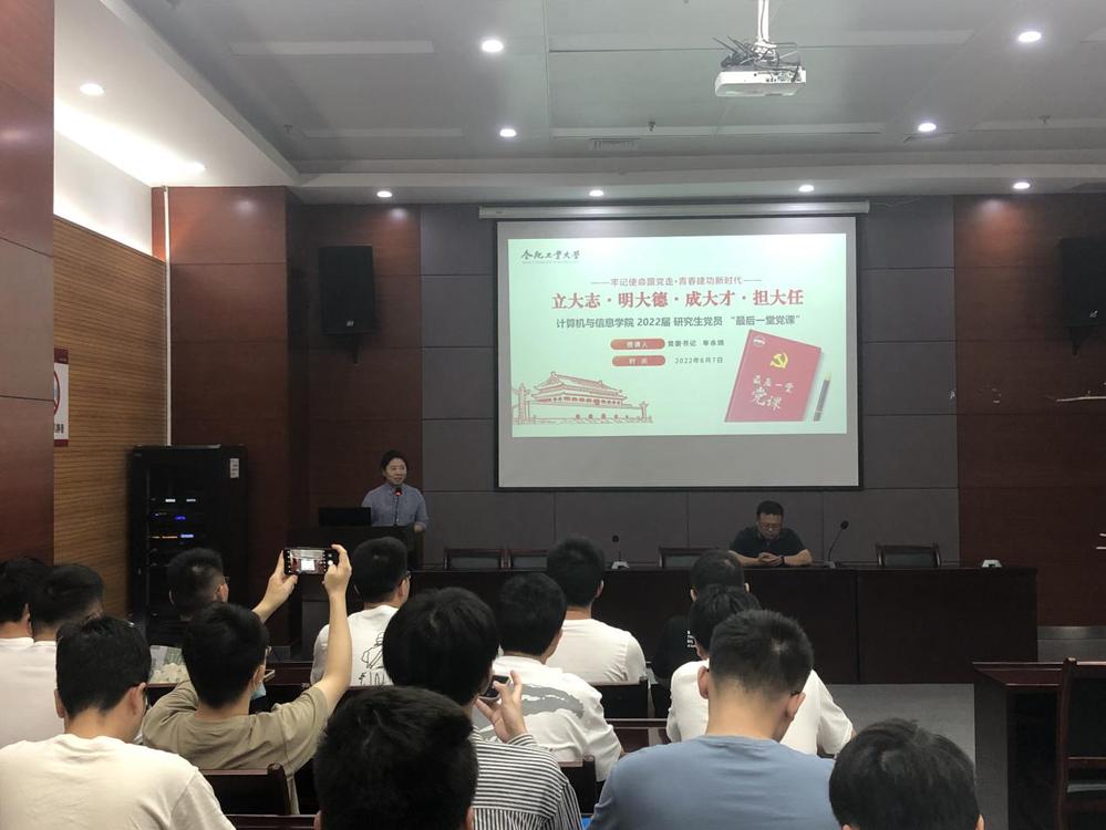 会上,年永琪首先对毕业生的顺利毕业表达了祝贺,并预祝大家在今后的工作中取得更好的成绩。随后,他与毕业班党员分享了自己入党22年的心得感悟和工大20年的工作经验,并提出殷切希望。年永琪指出,作为一名工大人和计算机学子,首先政治立场要坚定,要始终牢记自己的党员身份,保持纯洁性和先进性。在校自觉遵守学校管理,在外严格接受社会公德法律的约束,做立大志、明大德、成大才、担大任的新时代青年。从工作和生活两个角度出发,年永琪向在场党员学生提出两点建议:一是不说狂言诳语。入职初期少说话多看多听,后期该说的时候再说。二是拒绝精致利己。牢记党员的先锋带头作用,严格要求自己。最后,年永琪寄语毕业生党员弘扬工大人的优良作风,以积极饱满的热情去迎接人生的下一个阶段。
