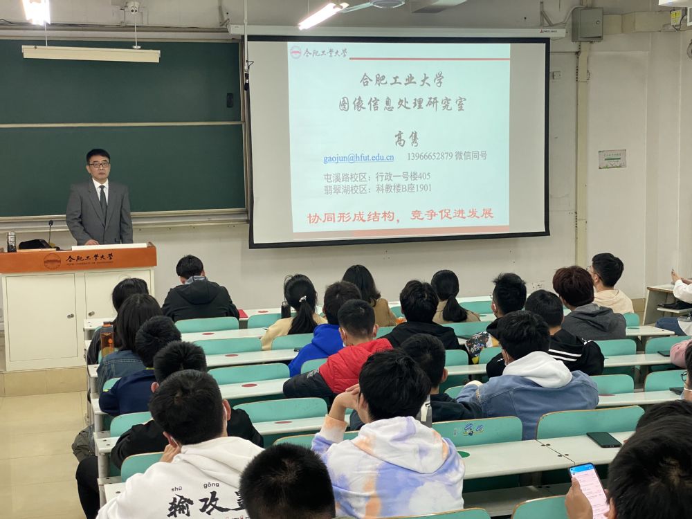 讲座中,高隽老师从自身学习经历为切入,剖析自身选择,讲述了从事专业技术研究的心路历程,分享了自己在科研攻关过程中的经历和体会,接着高隽老师提出了“协同形成结构,竞争促进发展”的人才发展目标,并寄语学生:做科研与学术要有准备、启动快、大步伐、排除干扰、后程发力。勉励同学们发挥自身优势,学好专业知识,将书本上的知识与实践融会贯通,在实践中不断增长智慧才干,在艰苦奋斗中锤炼意志品质。高隽老师的分享有理论、有方法、有案例、有讨论,内容丰富,层层递进,在报告会的交流环节中,同学们与教授积极互动,踊跃提问,现场氛围轻松热烈。