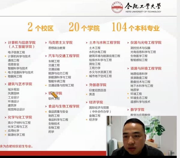 “递进式的新工科创新人才培养体系”,让学生和家长们提前感受了先进的大学育人模式、方法和体系。在宣讲过程中,考生和家长们线上互动热烈,纷纷就学校的录取分数线、转专业政策、宣城校区等方面进行了提问,得到了学院罗珣老师的及时答复。