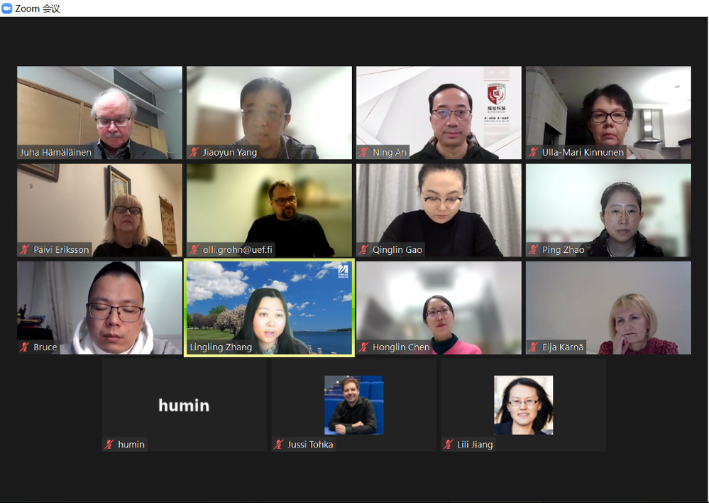 的安宁教授、谷雨教授、胡敏教授、赵萍教授、杨矫云副教授,来自哈佛大学的Lingling Zhang教授,来自上海天与养老服务有限公司的总裁办主任高青琳等分别介绍了各自的研究内容及在福祉科技领域的可能合作方向。最后,东芬兰大学的Honglin Chen教授介绍了中芬之间的科研与教学合作项目,与会专家就未来的合作意向进行了探讨。
