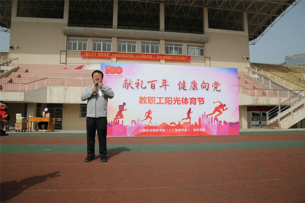 、软件学院在翡翠湖校区风雨操场举行了“献礼百年,健康向党”教职工阳光体育节活动。学院相关负责同志、160余名教师参加了活动。活动开幕式由学院副书记储文静主持。