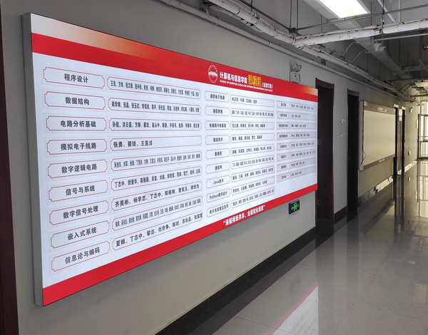 下图为“课程组”信息展示墙(学院11楼)。