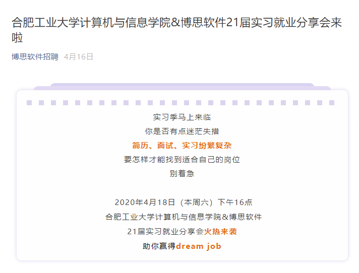 参与本次就业职播间的同学纷纷表示,感谢HR导师们的分享,受益匪浅。来自电子信息工程17-2班的翟培明,参加了其中一场线上求职培训。他表示:“今年的疫情也为就业带来了一定的冲击,但是通过这次的学习,确让我大大增强了未来的求职信心。”据悉此次企业HR职播间活动,是面向P站视频