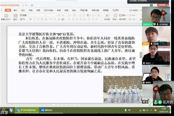 第一时间组织引领广大同学、学生骨干开展学习“习近平给北京大学援鄂医疗队全体‘90’后党员的回信”主题活动。习近平总书记的回信在P站视频