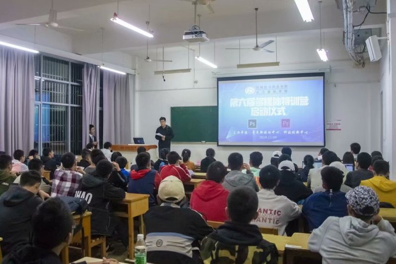 启动仪式上,2019级辅导员刘世国老师首先发言,畅谈了自己在学生时代对PS、PR技术的运用,并从自己的角度出发,阐述了多媒体技术的重要性。紧接着,青年新媒体中心闫子熙就培训计划展开详细周致的说明,其中着重讲解了出勤及评分规则。
