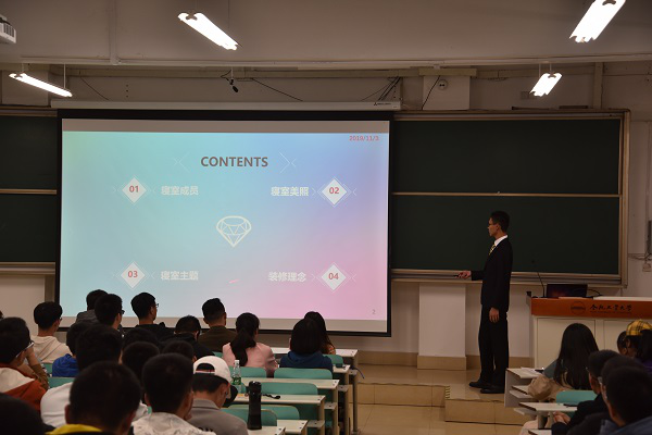 本次大赛自10月份启动以来,学院精心组织,全面动员,在全体学生的积极参与和准备下,经过近一个月的筹备和初赛评选,共有12个最具文化内涵和最具设计创意的寝室进入学院决赛。决赛以答辩的形式进行,各个参赛寝室围绕“与你相寓,一见钟寝”为主题,通过讲解详细地介绍了各寝室文明修身的文化理念和自己独有的文化内涵,既有温暖的古朴风,也有欧美简约风,以及可爱卡通风等等。活动结束之际,P站视频