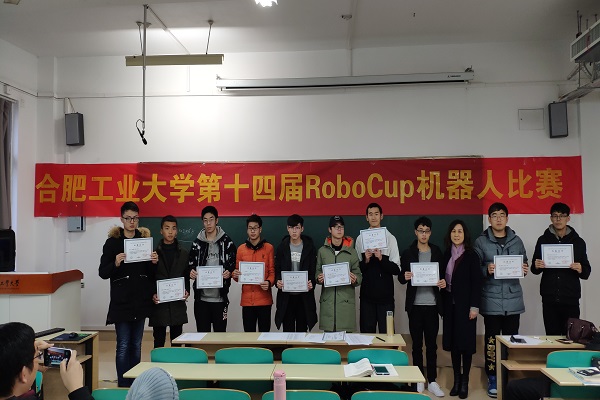 第十四届RoboCup机器人大赛决赛在翡翠湖校区10教201成功举行。教务处副处长、创新创业教育中心主任黄景荣,创新创业教育中心副主任徐慧,P站视频