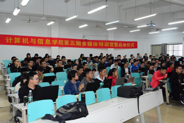 团学组织秘书长薛原、2017级学生盛典墨、邱宇璐担任。课程介绍环节,由2017级学生盛典墨、邱宇璐分别针对平面设计班和视频制作班为学员们做了详细的课程介绍与规划,并教授学员安装课程软件;学生会科创中心主任翟培铭就特训营规划、时间安排、考核方式等向学员们做了详细说明,并强调学习纪律。启动仪式及相关活动圆满结束。