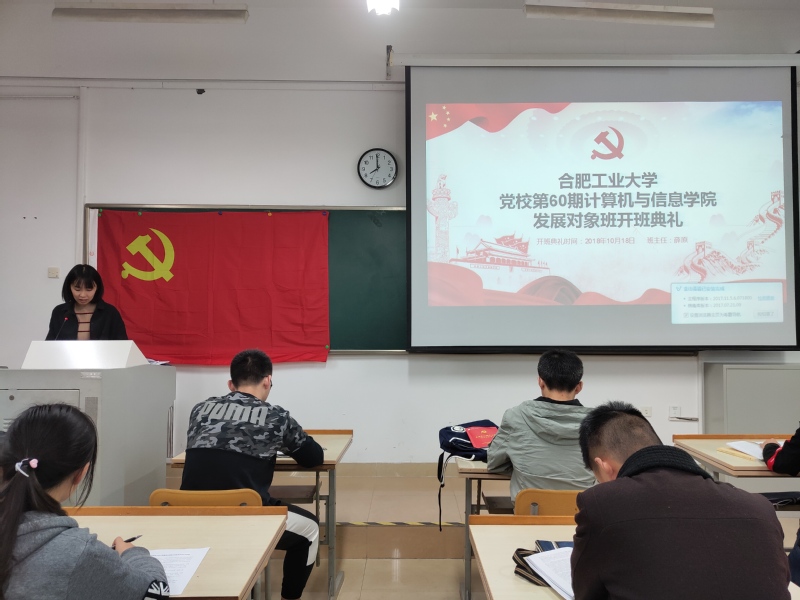 于2018年10月19日晚在翡翠湖校区四教303开展发展对象班开班典礼暨第一次党课课后学习和讨论,第60期党校发展对象班全体成员参与了本次学习。
