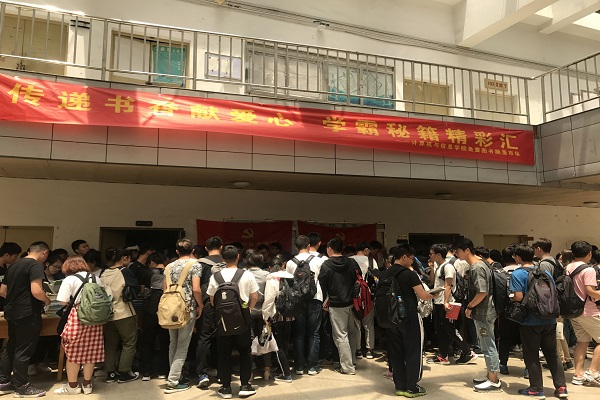 在翡翠湖校区综合楼二楼平台举办了“传递书香献爱心·学霸秘籍精彩汇—免费图书跳蚤市场”活动,现场气氛火爆,近200余学生参加了本次活动。