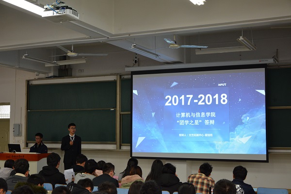 在翡翠湖校区举办2017-2018学年团学组织“团学之星”评比答辩。学院相关活动负责老师、团学组织全体成员共出席本次活动。
