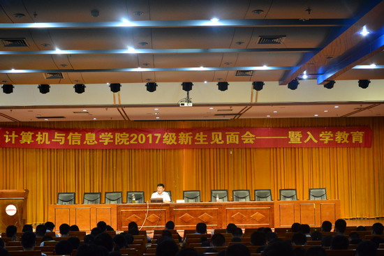 于翡翠湖校园图书馆报告厅举行了2017级新生见面会,学院党委书记组权,院长徐常胜等学院相关领导、各系所负责人,全体辅导员以及全体新生参加了此次见面会,见面会由学院党委副书记、副院长何庆领主持。