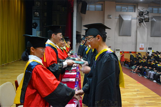 2017届毕业生学士学位授予决定》,全院共计405名同学被授予工学学士学位。之后,校领导与学院导师一起为全体学士学位获得者颁发学位证书,扶正流苏并合影留念。