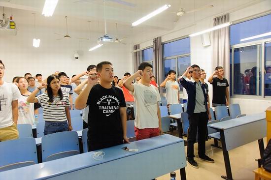 学院首先选取各班团学干部代表作为学员,由部分学同时担任主讲,举行了“喜迎十九大,坚定跟党走”主题团课,学员代表雷海燕同学在课上发言,她表示通过自己作为主讲人进行党的历史的解读和迎接十九大的准备让她真切的感受到自己作为新时代的在校大学生所肩负的使命和责任,在今后的大学生活中将牢记自己身为一名优秀的团学干部,将做到不忘初心,不辱使命,努力做好学院和班级团员学生的思想引领及学风带头作用。