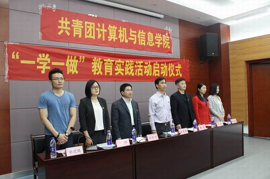 “一学一做”教育实践活动实施方案》,从学习教育、组织生活、实践活动三个方面对学院教育实践活动的具体安排进行布置。团总支书记王学森同学代表团学组织宣读了《“一学一做”教育实践活动倡议书》,向学院全体团学青年发起倡议,坚定理想信念、增进道德修养、勇担历史使命,扎实开展“一学一做”教育实践。