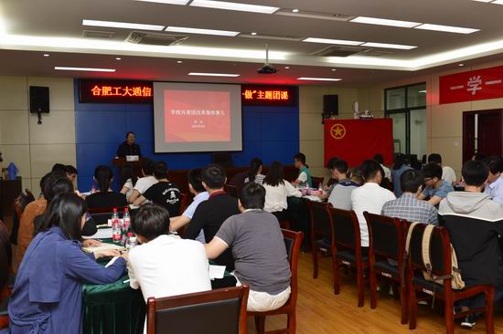 日前,为深入学习习近平总书记系列重要讲话,积极开展“一学一做”教育实践,学院通信工程2013级1班团支部在屯溪路校区科技楼开展“一学一做争先锋,不忘初心跟党走”主题教育实践活动。共青团安徽省委书记书记李红,共青团安徽省委学校部副部长马志华、徐波,校团委书记南国君,学院党委团委负责老师参与了本次活动。