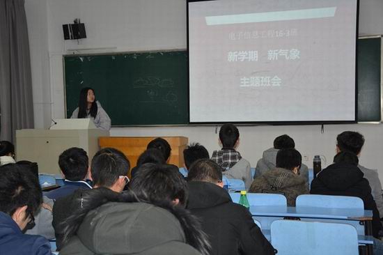 在班会上,多数班级由班长负责对上一学期本班的学业成绩、活动开展、制度建设等进行总体上的梳理和总结,由学习委员较为细致的分析本班的学业概况和挂科情况,并提出相应的解决办法,同时吸取同学的意见组建班内或寝室内一对一帮扶小组。由团支书对接下来一学期内的班级团建活动进行大致的规划。其中电信工16-2班班长提到“四新”,即在新学期的基础上力求新的班级制度,新的学习方法,新的个人目标,希望班内同学能够以新学期为新起点,在原有的基础上实现更大的突破。