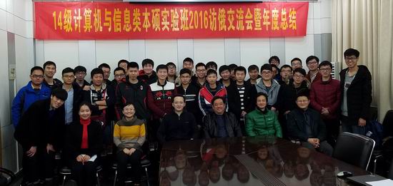 2016年1月8日下午2:30,14级计算机与信息类本硕连读创新实验班2016访俄交流曁年度总结会议在校学术活动中心第三会议室召开。参加本次会议的有教务部副部长、创新创业教育中心黄景荣院长,系主任路强老师,访俄领队樊玉琦院长助理、曹力老师,班主任余烨老师和实验班全体同学。