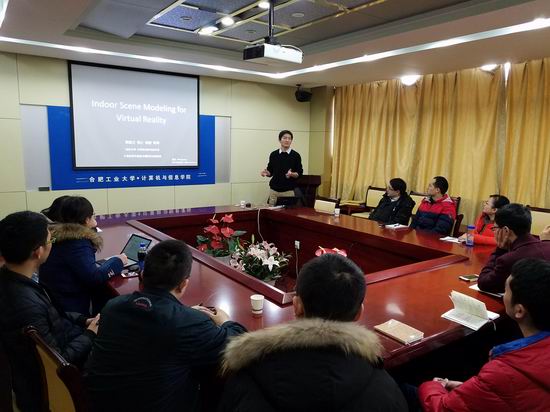 邀请,南京大学计算机科学与技术系、软件新技术国家重点实验室郭延文教授在逸夫楼408会议室做了题为“虚拟现实中的室内场景几何和材质建模”的学术报告。报告会由P站视频