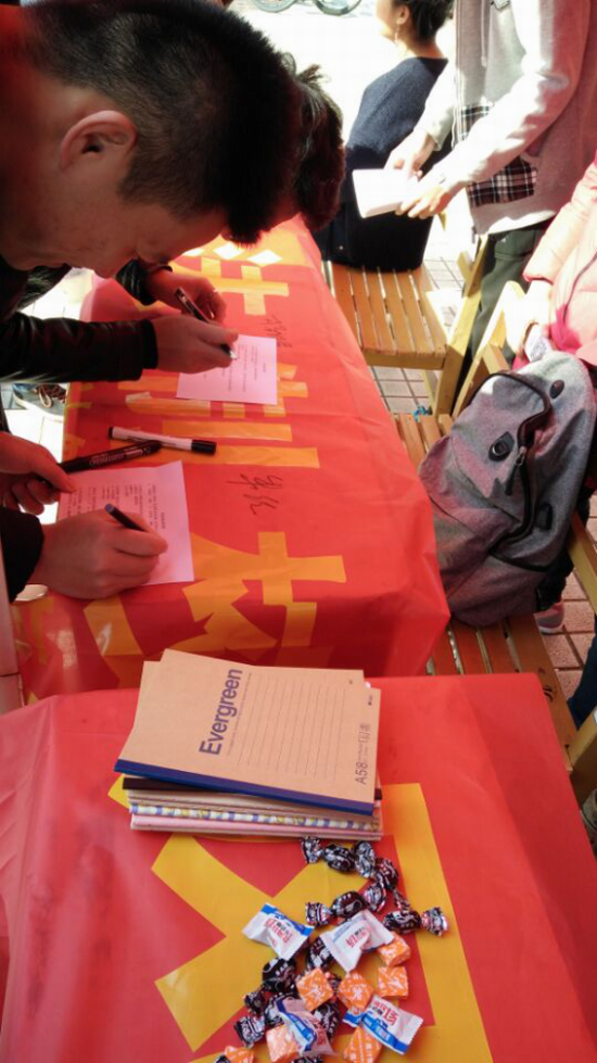 与此同时,2016年12月4日上午,在综合楼下举行宪法宣传签名活动。“增强宪法观念,共建法制校园”鲜红的条幅上书写着这十个庄严的大字,而途经路过的同学们纷纷在横幅上签下名字,既是对宪法宣传活动的支持,也是对宪法本身的崇敬。