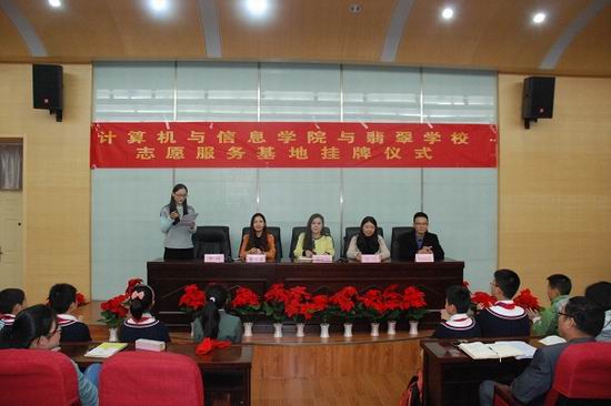 10月24日下午,学院与翡翠学校共建“科技沃新苗”志愿服务基地签约揭牌仪式在翡翠学校隆重举行。学院团委书记黄晨,15、16级辅导员以及翡翠学校全体师生出席仪式。