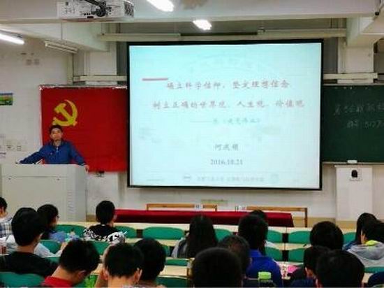 开班典礼后,何庆领给本期培训班学员做了题为《确立科学信仰 坚定理想信念 树立正确的世界观、人生观、价值观》的辅导报告。他从电影《建党伟业》入手,从科学信仰的内涵出发,紧扣当代大学生的基本情况、当前社会思潮的特点、当代大学生应当肩负的使命以及如何成为一名具有科学信仰的当代大学生展开阐述。最后,何书记还就党校的学习要求各位参加培训的学员要按照党员的标准,确立以马克思主义为个人的科学信仰,树立正确的世界观、人生观、价值观。