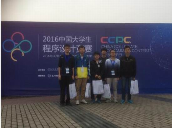 计算机、电信工和通讯工程等专业的9名本科同学在徐本柱、石雷和曹力老师的带领下参加了分别在长春、合肥和杭州三地举行的中国大学生程序设计大赛(CCPC)区域赛的比赛,获得2块银牌和1块铜牌的优秀成绩,取得了CCPC国赛的参赛资格。以下是图片报道: