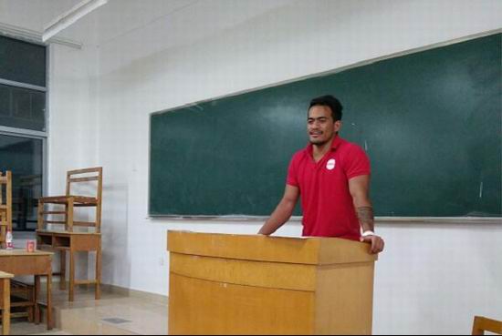 英语角沙龙活动已经连续举办两届,为了帮助同学们收获更多,此次英语角沙龙活动特别邀请留学生法曼和路远同学参与。两位留学生与现场的同学们进行了形式多样的交流。首先,法曼幽默风趣地进行了自我介绍,随后与同学们交流了一些有关英语学习方面的问题。接着,法曼又向同学们介绍了自己的留学与生活经历,现场气氛越来越活跃。最后,在法曼的带领下,同学们又进行了有趣的英文小游戏,欢笑声不绝于耳,将活动推向了高潮。
