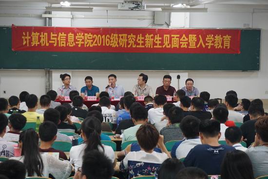 在翡翠湖校区5教202举办2016级研究生新生见面会暨入学教育,学院2016级200余名研究生新生到场参加。学院院长徐常胜、党委书记祖权、副院长杨学志、党委副书记何庆领、副院长汪萌、副院长徐浩、院长助理樊玉琦、教务员和研究生辅导员出席见面会。