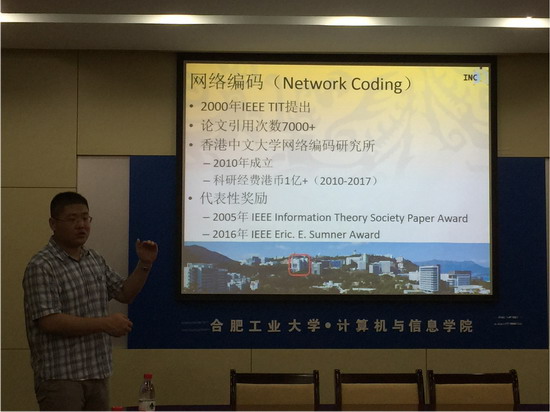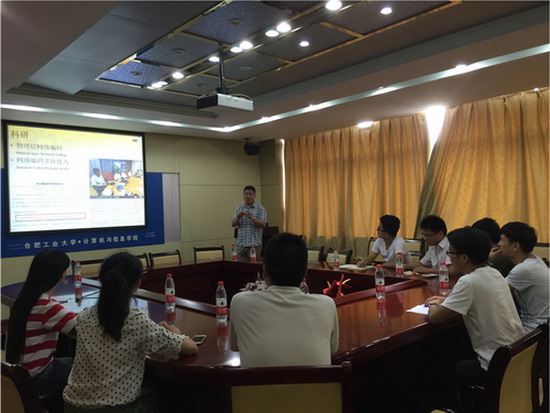 报告会上,路博士首先介绍了自己的科研和工作经历,以及工作单位香港中文大学网络编码研究所。针对网络编码多址接入技术,路博士首先介绍了物理层网络编码(PNC)的基本理论,阐述了基于USRP的PNC原型机系统开发中遇到的实际困难和解决方法;进而,针对PNC在非中继网络中的应用,阐述了NCMA系统的设计思想和实现方法,并展示了NCMA Demo系统。在报告会后半段,路博士与在座的研究生进行了交流,为同学们在如何做科研、毕业以后去向等方面提供建议和指导。